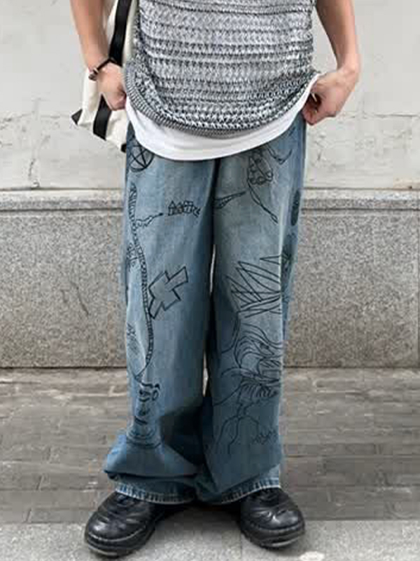 Vaqueros divertidos con estampado pintado a mano para hombre
