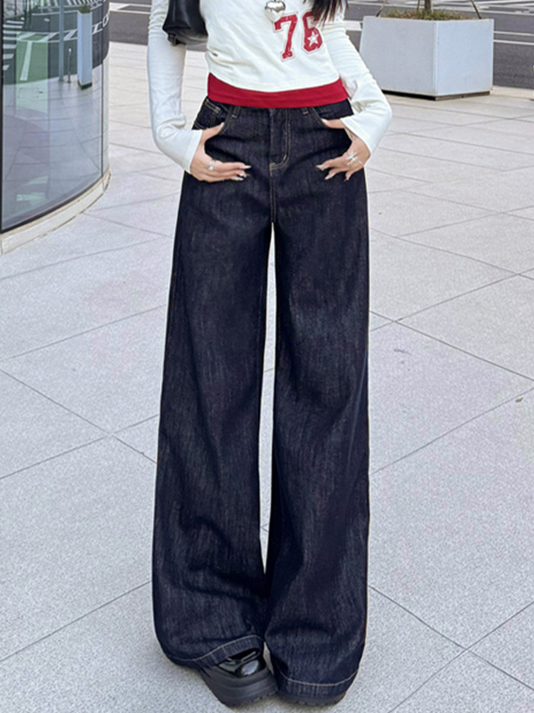 Vaqueros rectos y holgados con bigotes de gato estilo retro americano
