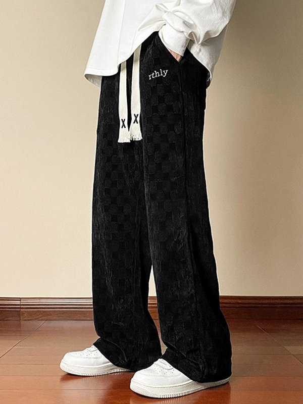 Pantalones de pierna ancha con cordón y estampado de cuadros de pana para hombre