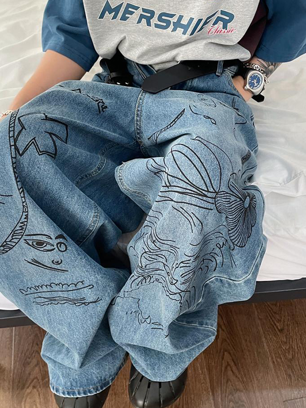 Vaqueros holgados con grafiti callejero para hombre