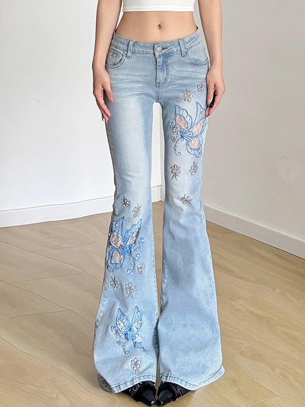 Vaqueros acampanados con cuentas y bordado de mariposas