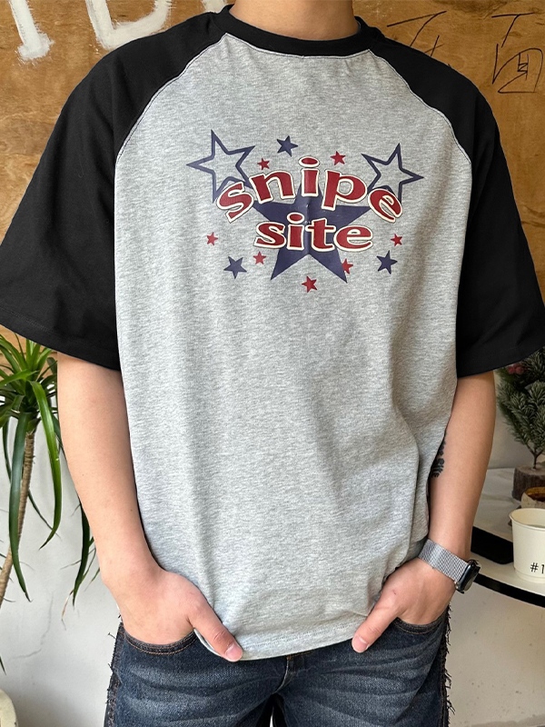 Camiseta de manga corta raglán con estampado de estrellas para hombre