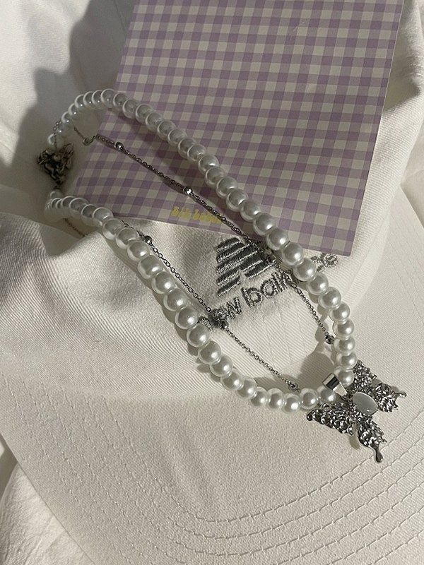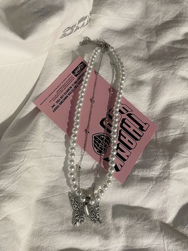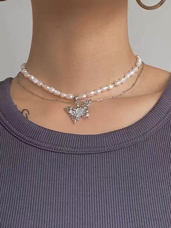 Detalles: Collar de perlas de agua dulce de mariposa