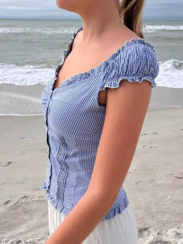 Sé el primero en valorar “Ruffled V Neck Short Sleeve Tee”