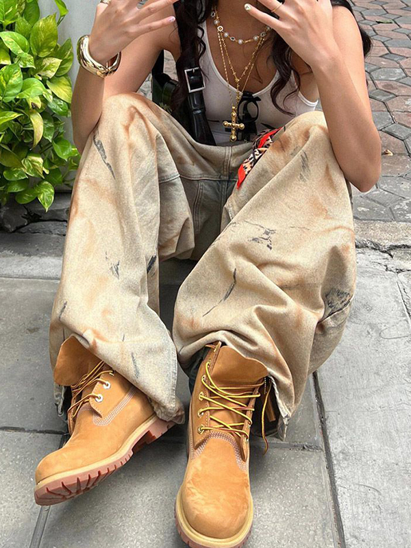 Vaqueros boyfriend con efecto tie-dye estilo scrap americano