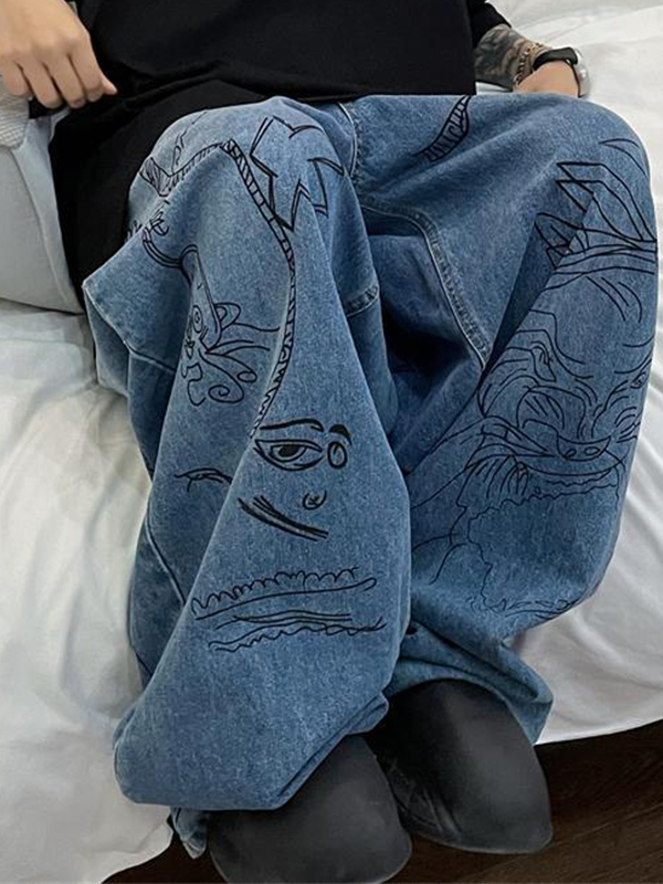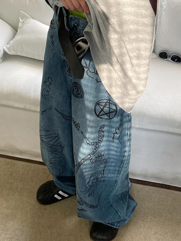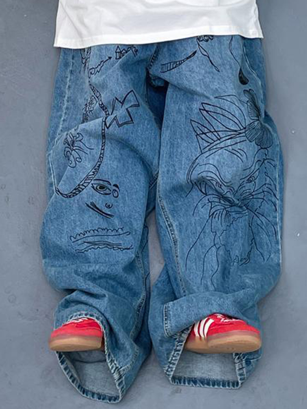 Vaqueros holgados con grafiti callejero para hombre