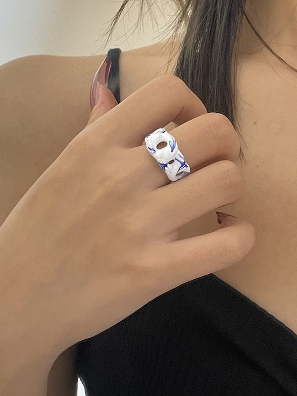 Anillo de puño de esmalte con adorno de diamantes de imitación