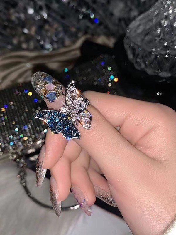 Anillo de ángel de flor de mariposa vintage de 9 piezas