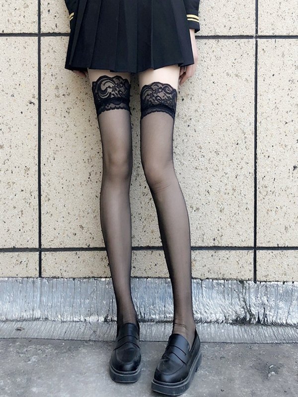 Calcetines hasta el muslo de malla con paneles de encaje
