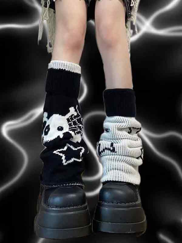Calentador de piernas reversible con estampado de calaveras y estrellas