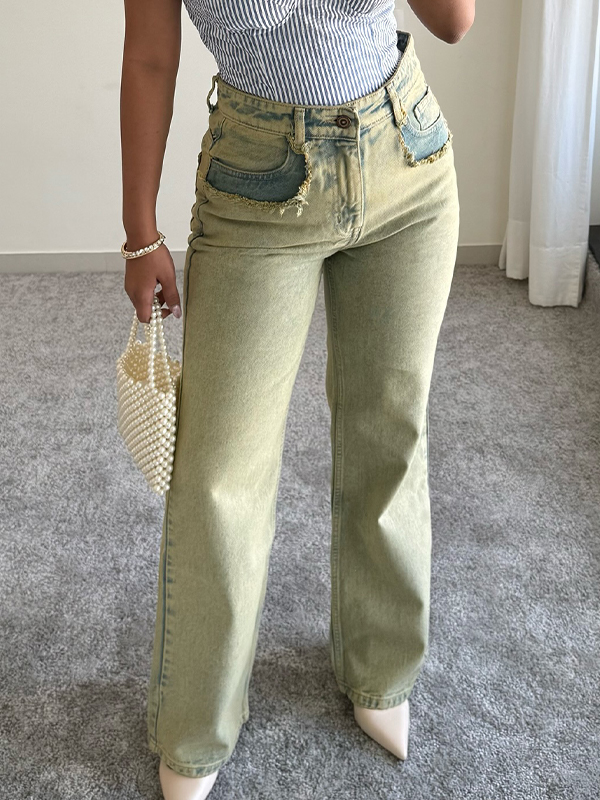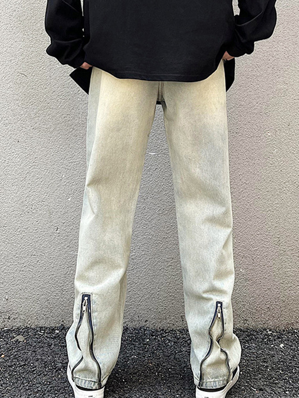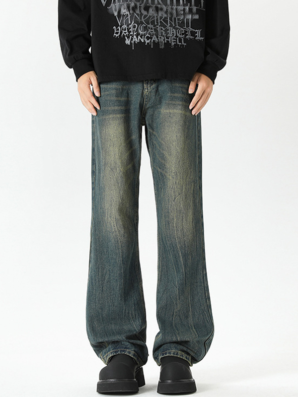 Vaqueros holgados ligeramente levantados con bigotes de gato lavados estilo retro americano