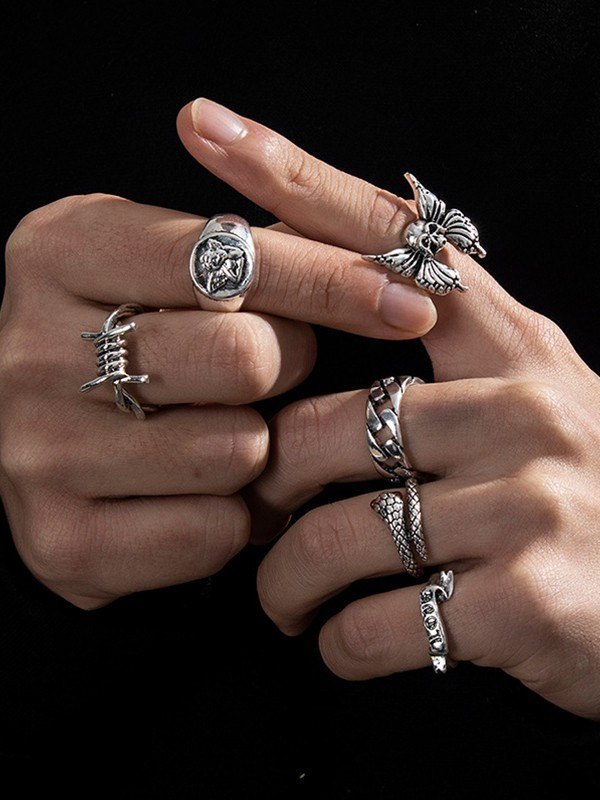 Anillo punk de plata para hombre de 6 piezas