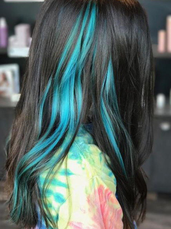 Extensión de cabello con clip largo y recto azul de 1 pieza